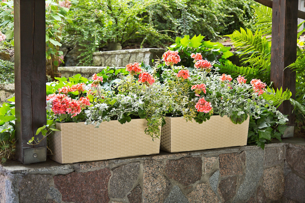 A LAMELA Begonia balkonláda rattan hatású felületkialakításának köszönhetően szemet gyönyörködtető dekorációja erkélyünknek.