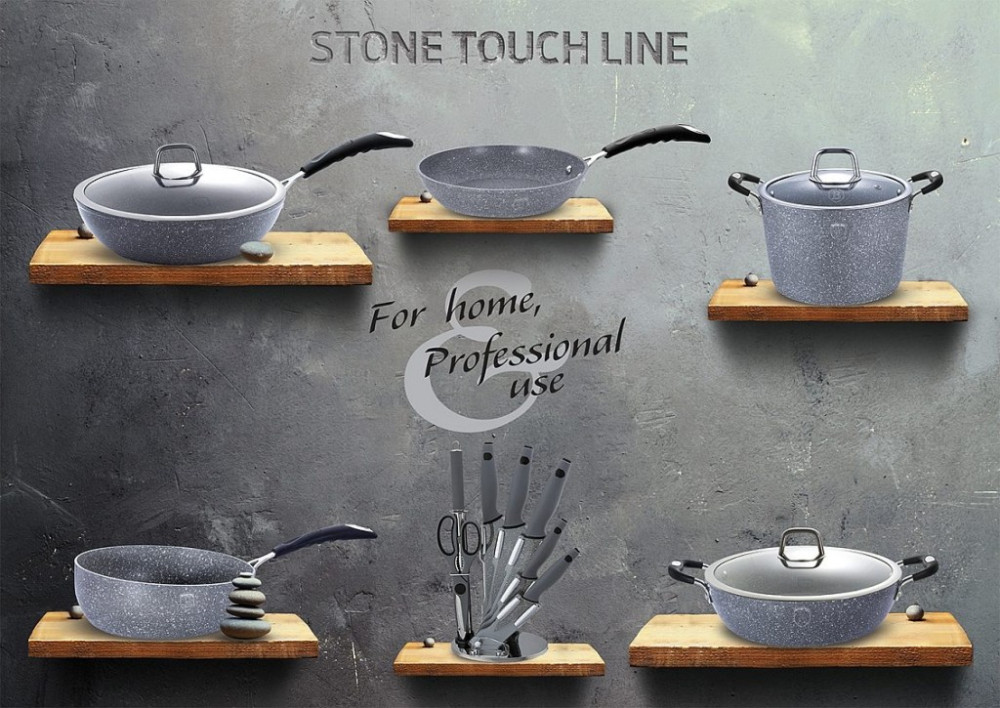 A BerlingerHaus serpenyői és edényei szinte kivétel nélkül 3 rétegű kovácsolt alumíniumból készülnek, amely lehetővé teszi a magasfokú hővezetést. Emellett 3 rétegű tapadásmentes márványbevonattal rendelkeznek, aminek köszönhetően az étel nem ragad és nem ég az edény aljára, így az ételek minimális zsiradék hozzáadásával is egyenletesen fognak átsülni és szaftosak maradnak.