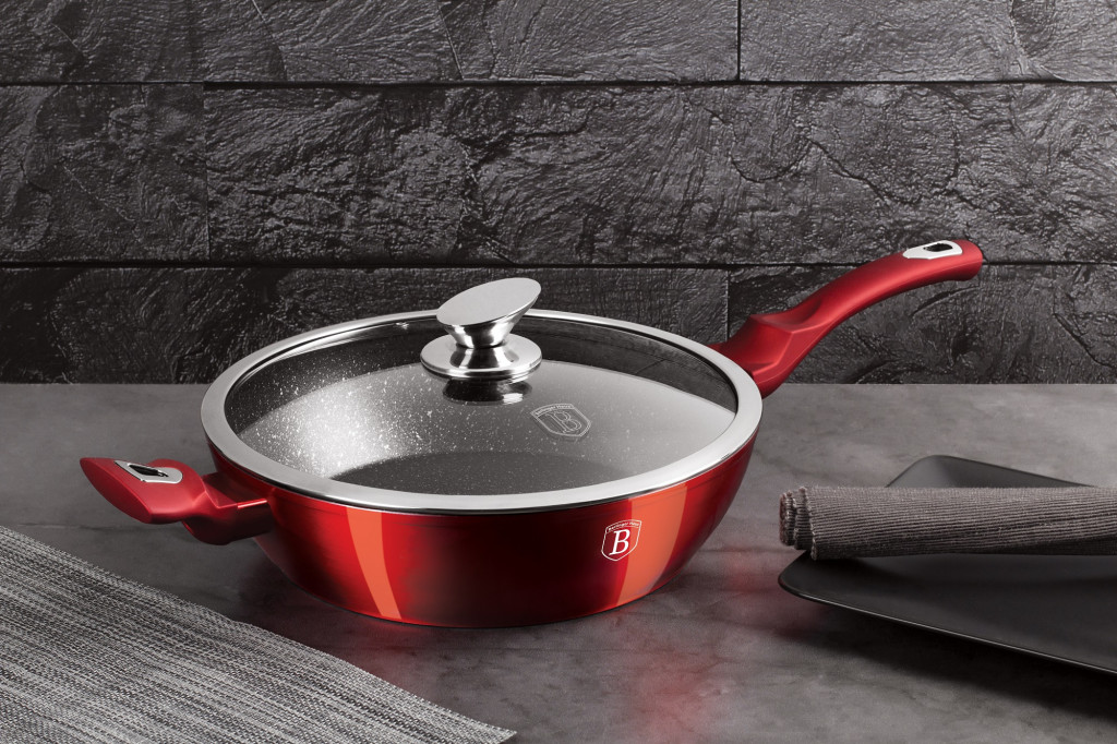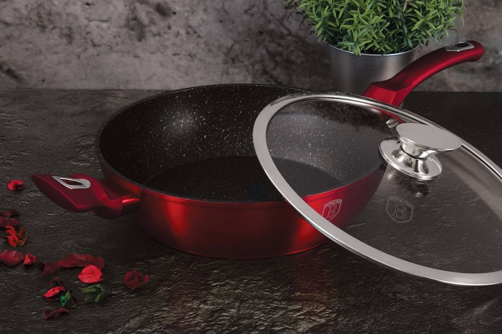 A burgundi szín elegáns megjelenést kölcsönöz a serpenyőnek, amely bármely konyhai környezetbe illeszkedik.