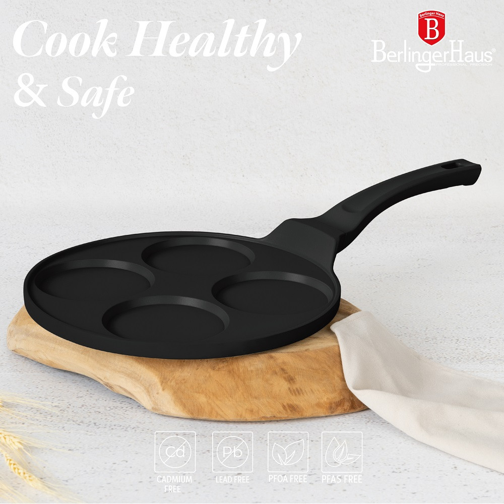 A BerlingerHaus 4 lyukú palacsintasütője dupla rétegű tapadásmentes bevonattal rendelkezik, aminek köszönhetően az étel nem ragad és nem ég az edény aljára, így minimális zsiradék hozzáadásával is egyenletesen fog átsülni.