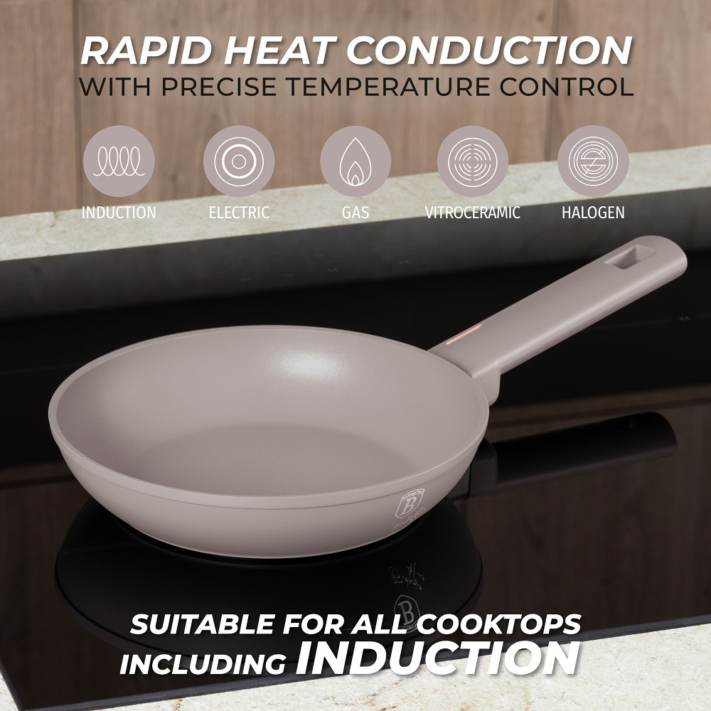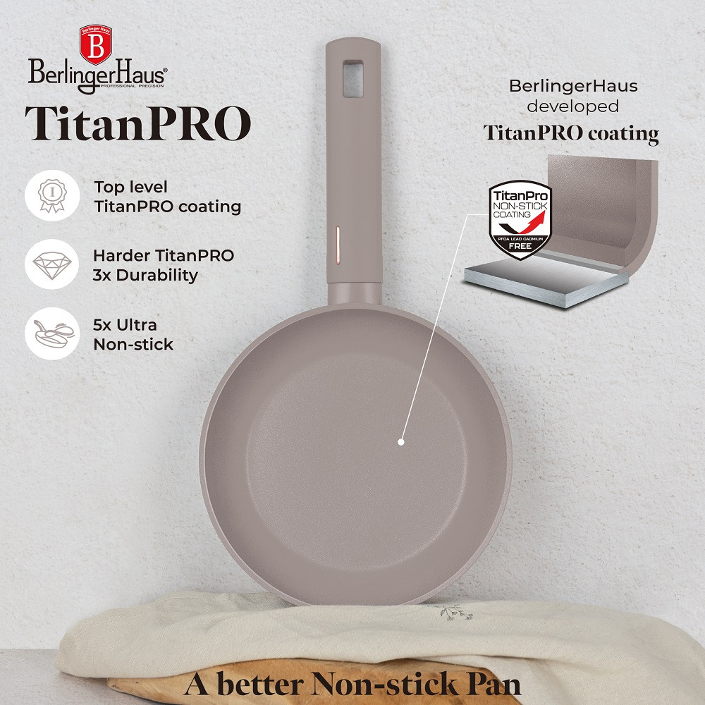 A BerlingerHaus serpenyői és edényei szinte kivétel nélkül 3 rétegű kovácsolt alumíniumból készülnek, amely lehetővé teszi a magasfokú hővezetést. Emellett 3 rétegű titanPro bevonattal rendelkeznek, aminek köszönhetően az étel nem ragad és nem ég az edény aljára, így az ételek minimális zsiradék hozzáadásával is egyenletesen fognak átsülni és szaftosak maradnak.