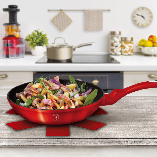 A BerlingerHaus serpenyői és edényei szinte kivétel nélkül 3 rétegű kovácsolt alumíniumból készülnek, amely lehetővé teszi a magasfokú hővezetést. Emellett 3 rétegű tapadásmentes márványbevonattal rendelkeznek, aminek köszönhetően az étel nem ragad és nem ég az edény aljára, így az ételek minimális zsiradék hozzáadásával is egyenletesen fognak átsülni és szaftosak maradnak.