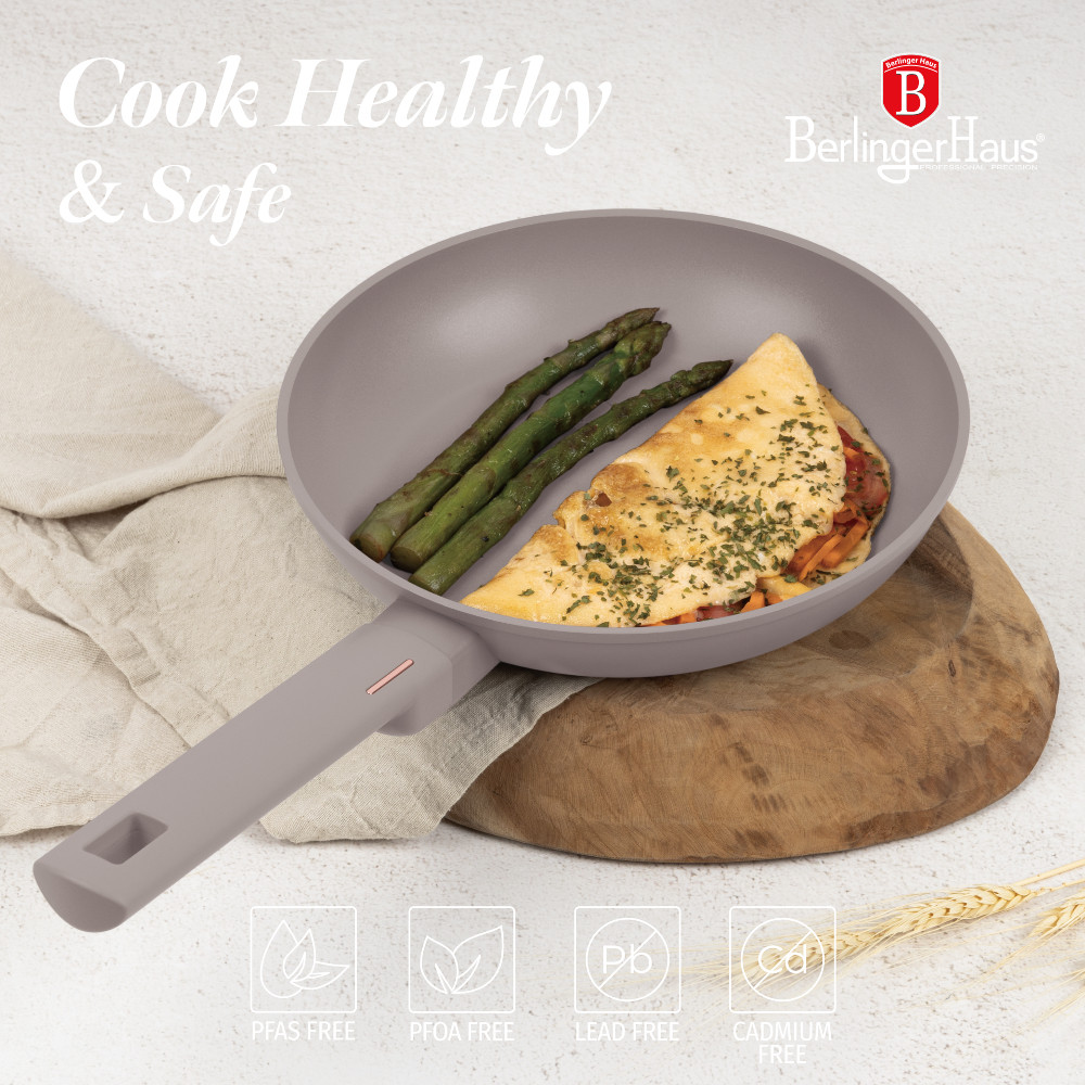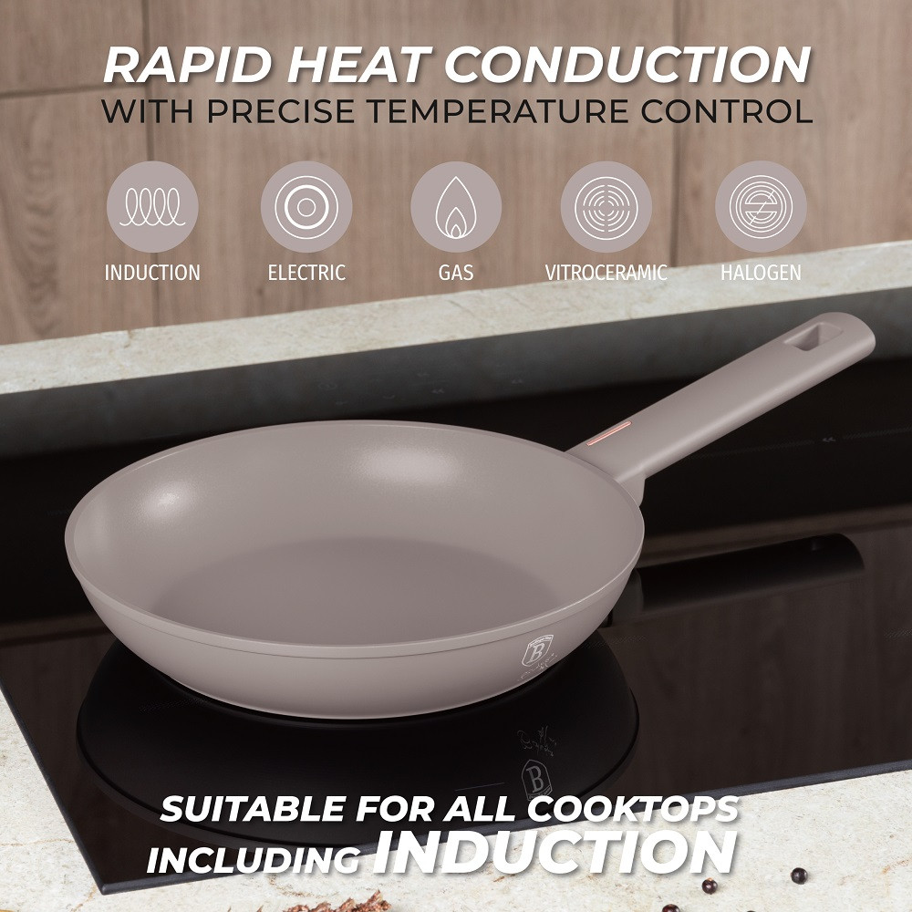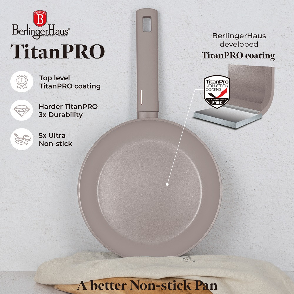 A BerlingerHaus serpenyői és edényei szinte kivétel nélkül 3 rétegű kovácsolt alumíniumból készülnek, amely lehetővé teszi a magasfokú hővezetést. Emellett 3 rétegű titanPro bevonattal rendelkeznek, aminek köszönhetően az étel nem ragad és nem ég az edény aljára, így az ételek minimális zsiradék hozzáadásával is egyenletesen fognak átsülni és szaftosak maradnak.