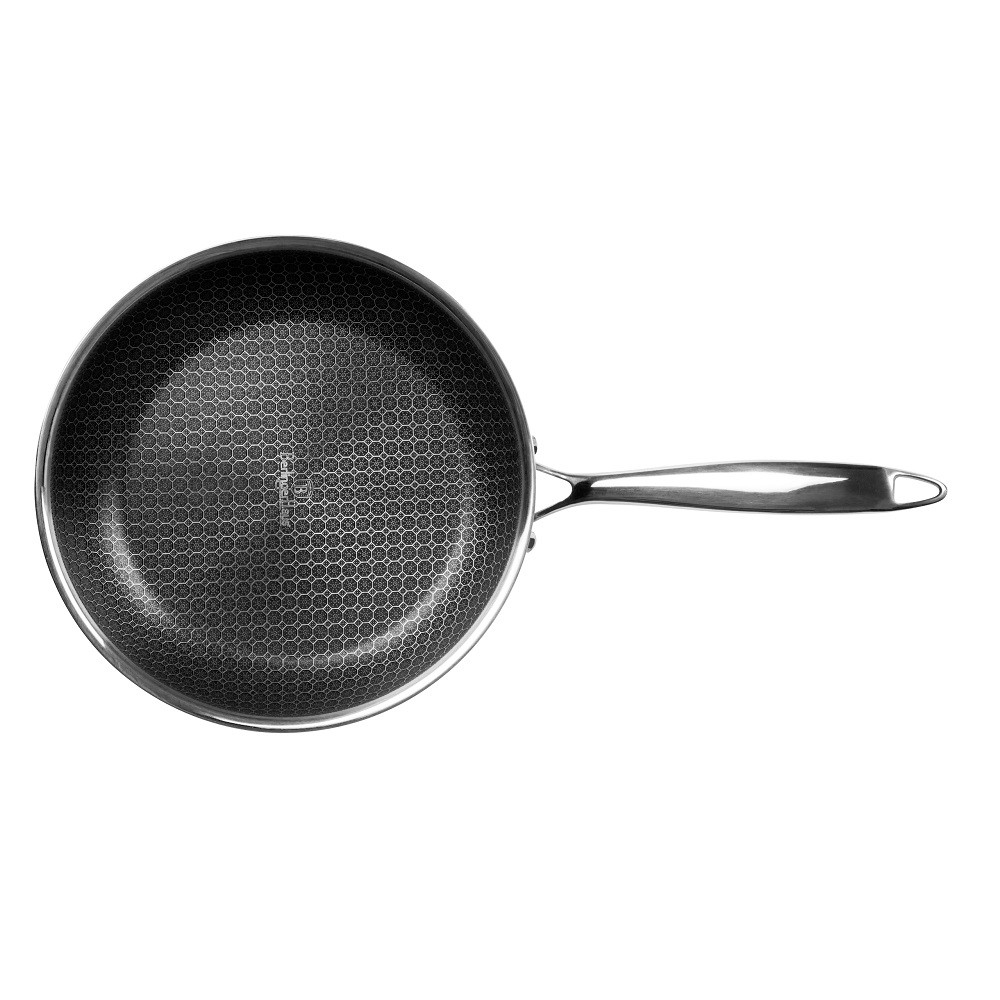 Tapadásmentes bevonat: 3 rétegű akutermikus aljjal rendelkezik, amely tökéletesen összegyűjti a hőt és egyenletesen elosztja azt az edény teljes felületén. A 3D bevonatot méhsejt háló formájában hordják fel. Ez a bevonat rendkívül tartós és karcálló. Lehetővé teszi, hogy minimális mennyiségű zsírral sütjük és főzzük. Az étel még magas hőmérsékleten sem ragad le.