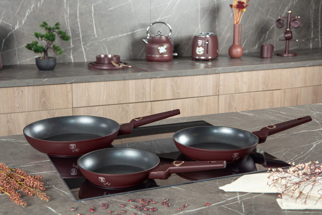 A BerlingerHaus serpenyői és edényei szinte kivétel nélkül 3 rétegű kovácsolt alumíniumból készülnek, amely lehetővé teszi a magasfokú hővezetést. Emellett tapadásmentes titánPro bevonattal rendelkeznek, aminek köszönhetően az étel nem ragad és nem ég az edény aljára, így az ételek minimális zsiradék hozzáadásával is egyenletesen fognak átsülni és szaftosak maradnak.