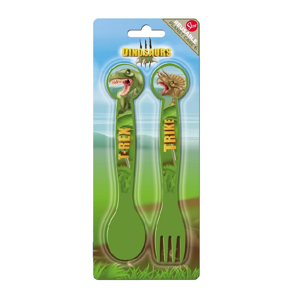 Ez a 2 darabos, kanalat és villát tartalmazó, kedves dinoszaurusz mintás evőeszköz szett pillanatok alatt eltünteti az étkezési nyűgöket, és igazi őskori lakomává változtatja az ebédet vagy a vacsorát. A kis kanál és villa kifejezetten gyermekkézre méretezett, így támogatja a kicsik önálló étkezését.