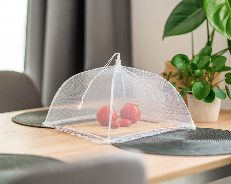 Ez a kedvelt konyhai eszköz finom szövésű anyagból készül, ami lehetővé teszi a levegő szabad áramlását, így az ételek nem füllednek be alatta, miközben hatékony fizikai védelmet nyújt a legyek, darazsak és egyéb rovarok ellen.