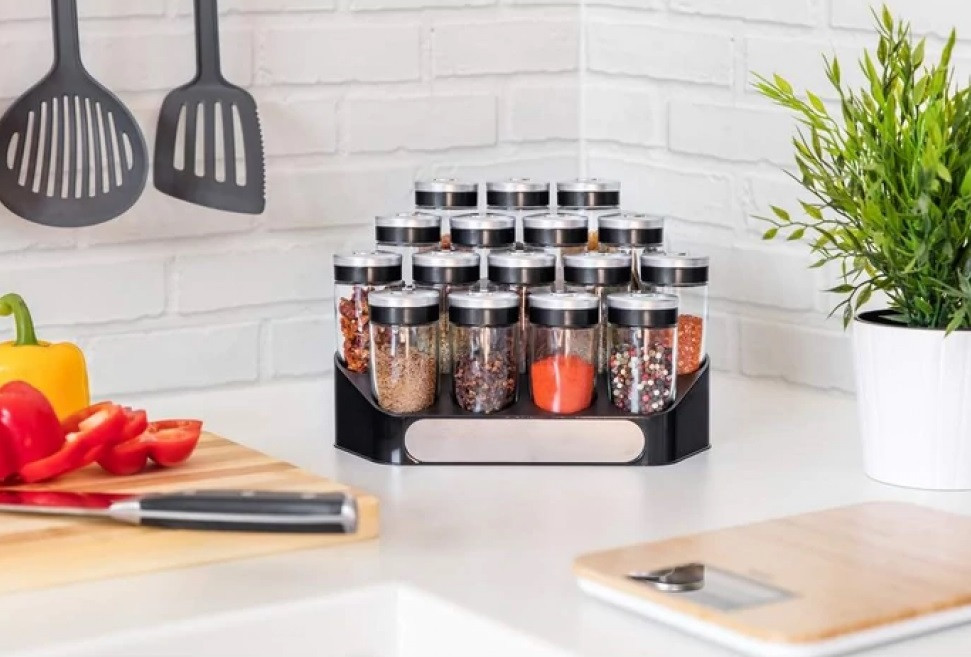 ALTIMA 17 részes fűszertartó szett, amely tökéletes megoldás azoknak, akik szeretik a rendet, az átláthatóságot és a modern esztétikát a konyhában. Ez a komplett készlet nemcsak praktikus, de egységes megjelenést kölcsönöz a fűszerpolcnak vagy a konyhaszekrénynek.