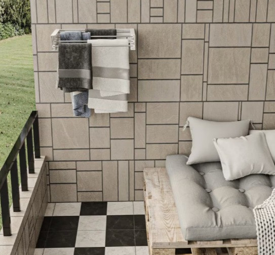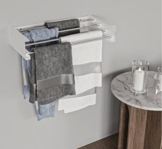 A szárító használaton kívül szorosan a falhoz hajtható, így ideális kis lakásba, fürdőszobába, mosókonyhába vagy erkélyre, teraszra is.