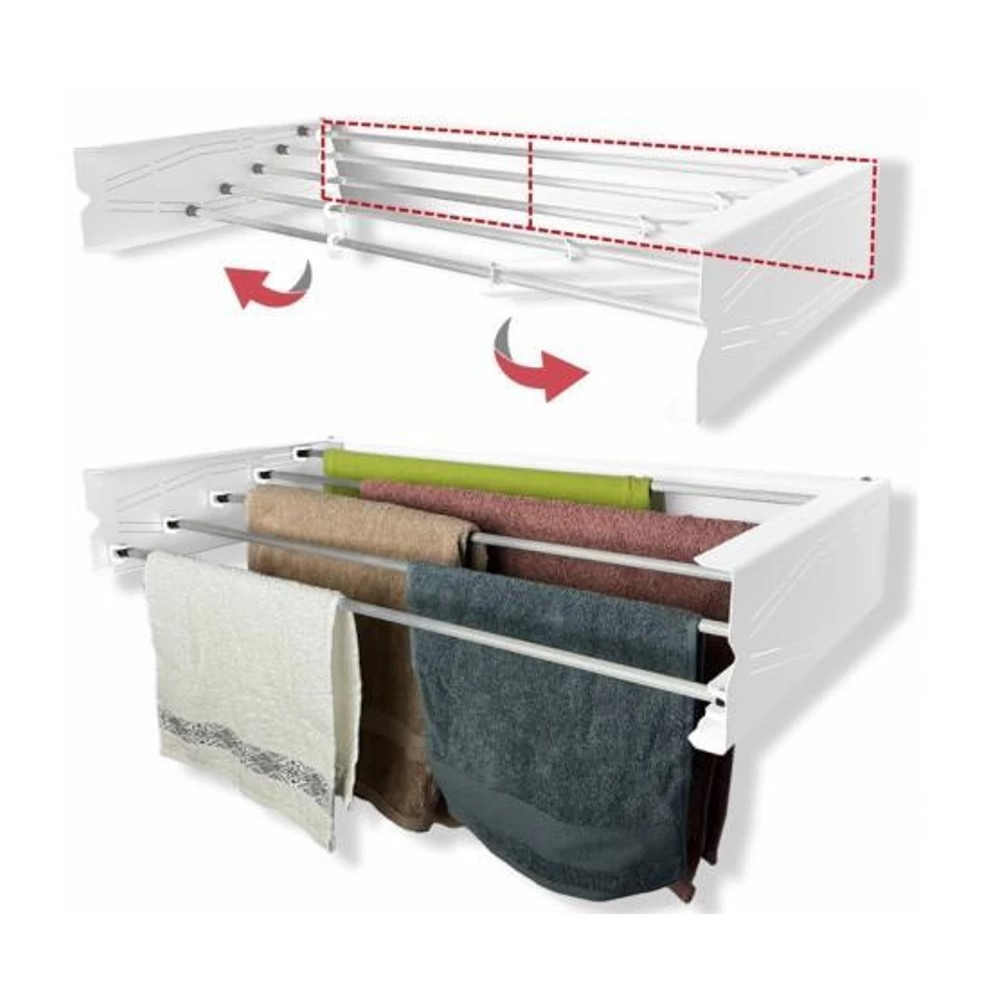 Falra szerelhető, összecsukható ruhaszárító, amely praktikus fürdőszobai eszköz, hasznos háztartási termék. Fali kivitele révén használatával helytakarékosan száríthatók a ruhák.