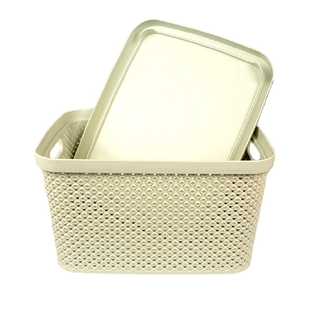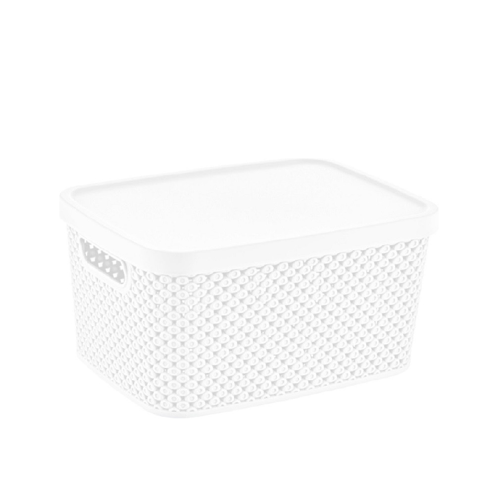 Diamond tárolódoboz tetővel, amely tökéletes választás a fürdőszobába, a gyerekszobába, a konyhába. Dekoratív gyémánt mintája révén elegáns megjelenésű, jól mutat bármely helyiség polcán. Kényelmes fogantyúinak köszönhetően könnyedén szállítható, így a konyhai és fürdőszobai kiegészítők, egyéb kellékek bármely szobában helyet kaphatnak. Kivitele révén több doboz is biztonságosan, stabilan egymásra rakható.