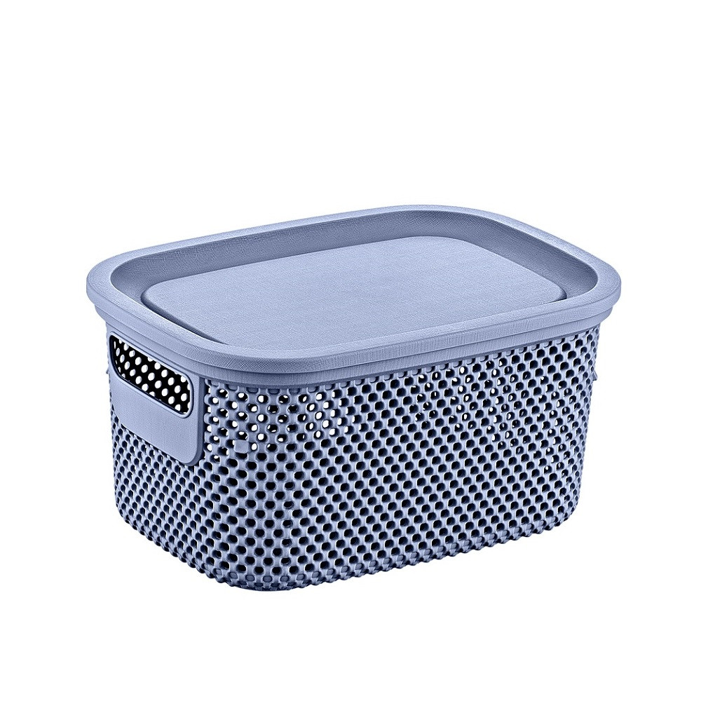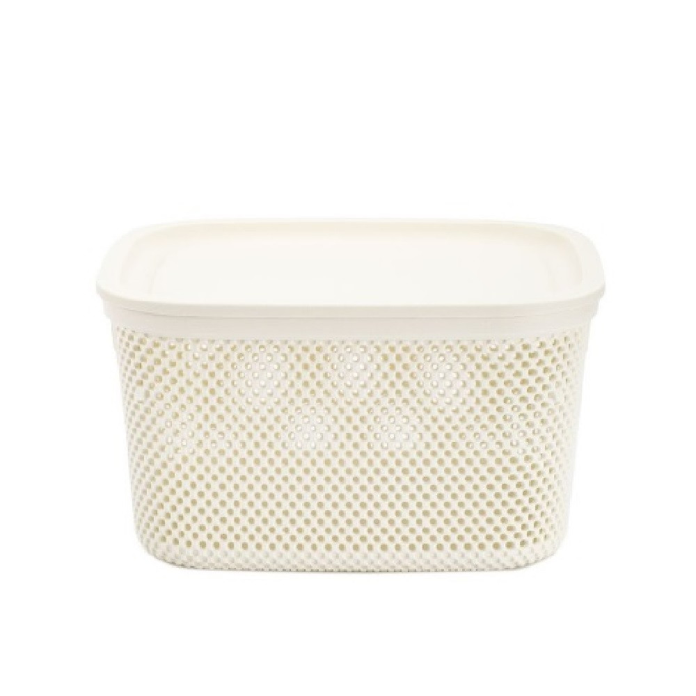 Nickel tárolódoboz tetővel, amely tökéletes választás a fürdőszobába, a gyerekszobába, a konyhába. Dekoratív mintája révén elegáns megjelenésű, jól mutat bármely helyiség polcán. Kényelmes fogantyúinak köszönhetően könnyedén szállítható, így a konyhai és fürdőszobai kiegészítők, játékok vagy egyéb kellékek bármely szobában helyet kaphatnak. Kivitele révén több doboz is biztonságosan, stabilan egymásra rakható.