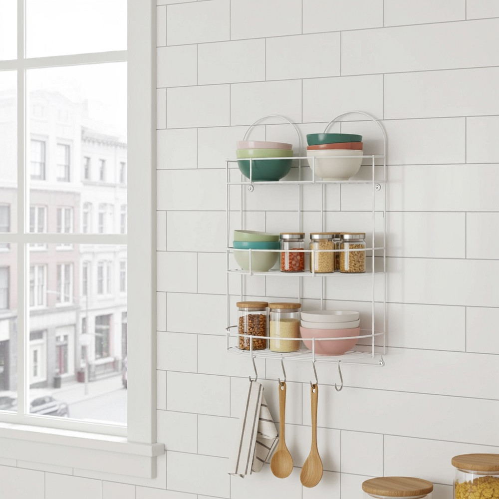 Háromszintes, félköríves kialakítású fürdőszobai szinterezett fém fali polc. Praktikus, sokoldalúan használható és az otthonunk szinte minden helyiségében - a fürdőszobától a garázsig - hasznos kiegészítő. Ez a 3 polcos népszerű háztartási termék sosem megy ki a divatból. Jó minőségű anyagból készült, hosszú használatra tervezett, jó teherbíró-képességgel rendelkező eszköz.