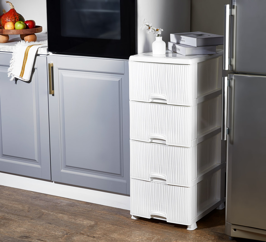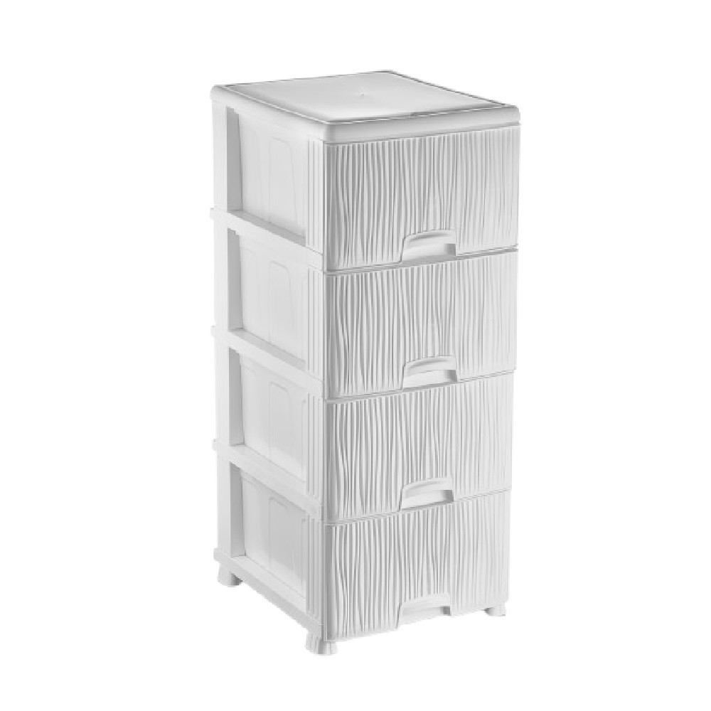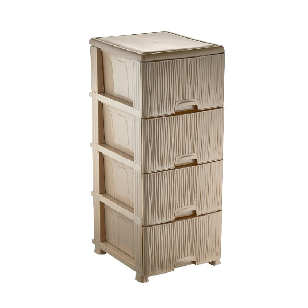 ECO WAVY éjjeliszekrény, 4 fiókos tároló szekrény elengedhetetlen kiegészítő minden otthonba. Elegáns, bordázott textúrájának köszönhetően egyedi a megjelenése, tökéletes megoldás magazinok, könyvek, irodai-, vagy fürdőszobai kiegészítők tárolására.
