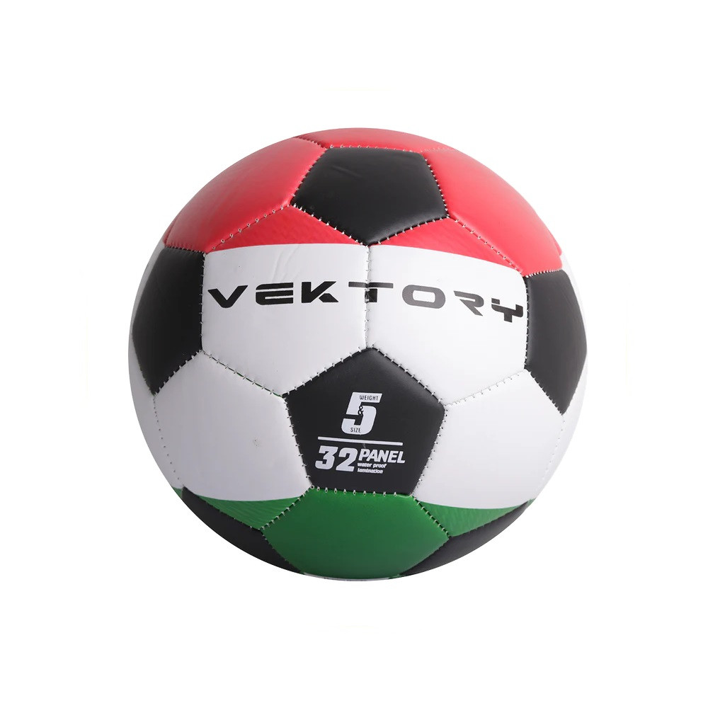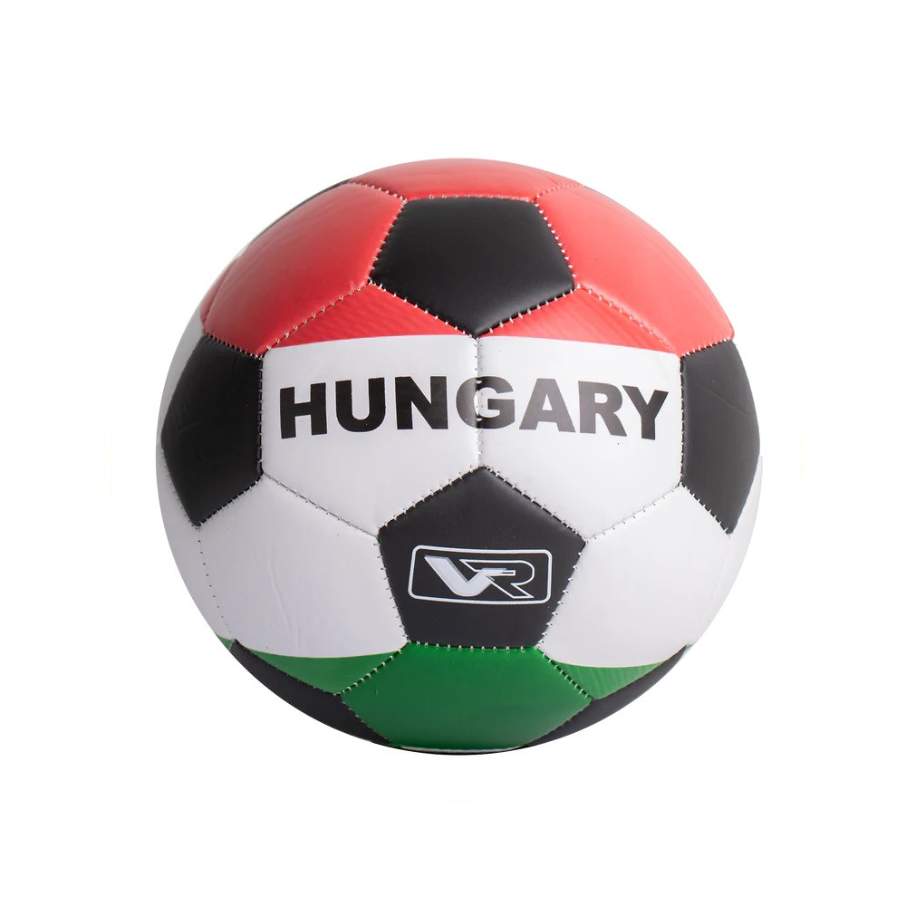 A futball labda a magyar nemzeti színek, a piros, fehér és zöld feltűnő kombinációjával készült, a közepén a markáns HUNGARY felirattal.
