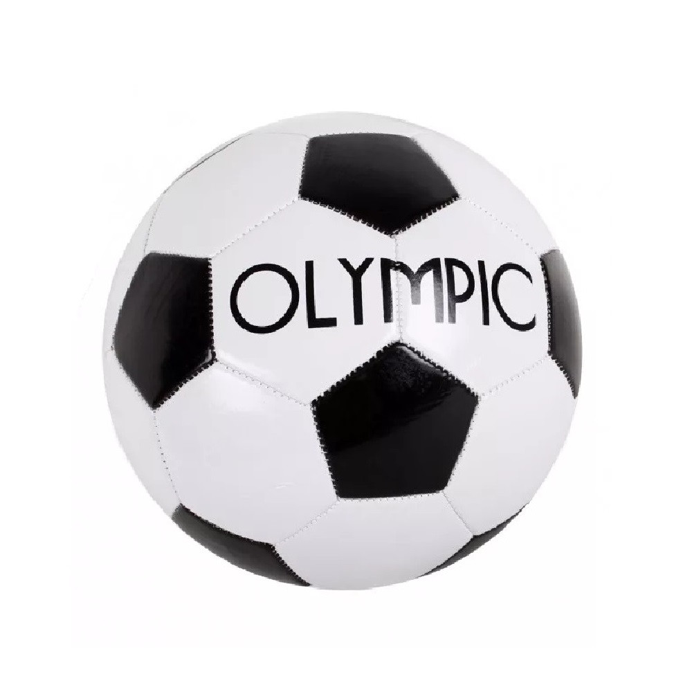 OLIMPIC feliratú, 5-ös, normál méretű focilabda fekete-fehér színben, a futballrajongók nélkülözhetetlen kelléke. Kiváló minőségű soprteszköz, kicsik és nagyok kedvelt játéka. Hosszú használatra tervezett, kiváló minőségű termék.