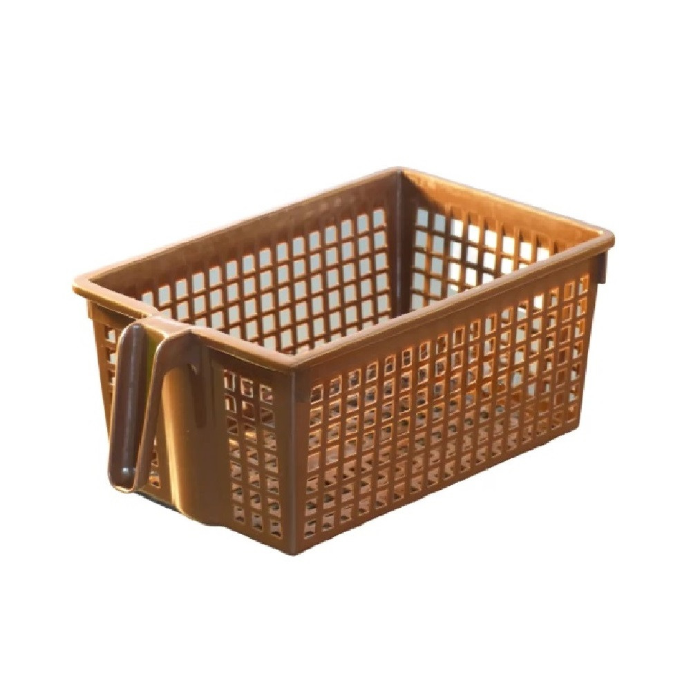 Fogantyús rendszerező, tároló kosár, amely ideális sokféle használati tárgy és kiegészítő tárolására az irodában, a konyhában, vagy akár a fürdőszobában is. Az egyedi, lyukacsos mintázata révén szellőzik a tároló tartalma és dekoratív megjelenítésű, így tökéletes kiegészítője bármely helyiségnek. Kényelmes fogantyújának köszönhetően könnyedén mozgatható. Tartós használatra tervezett háztartási termék.Kiváló minőségű magyar termék.