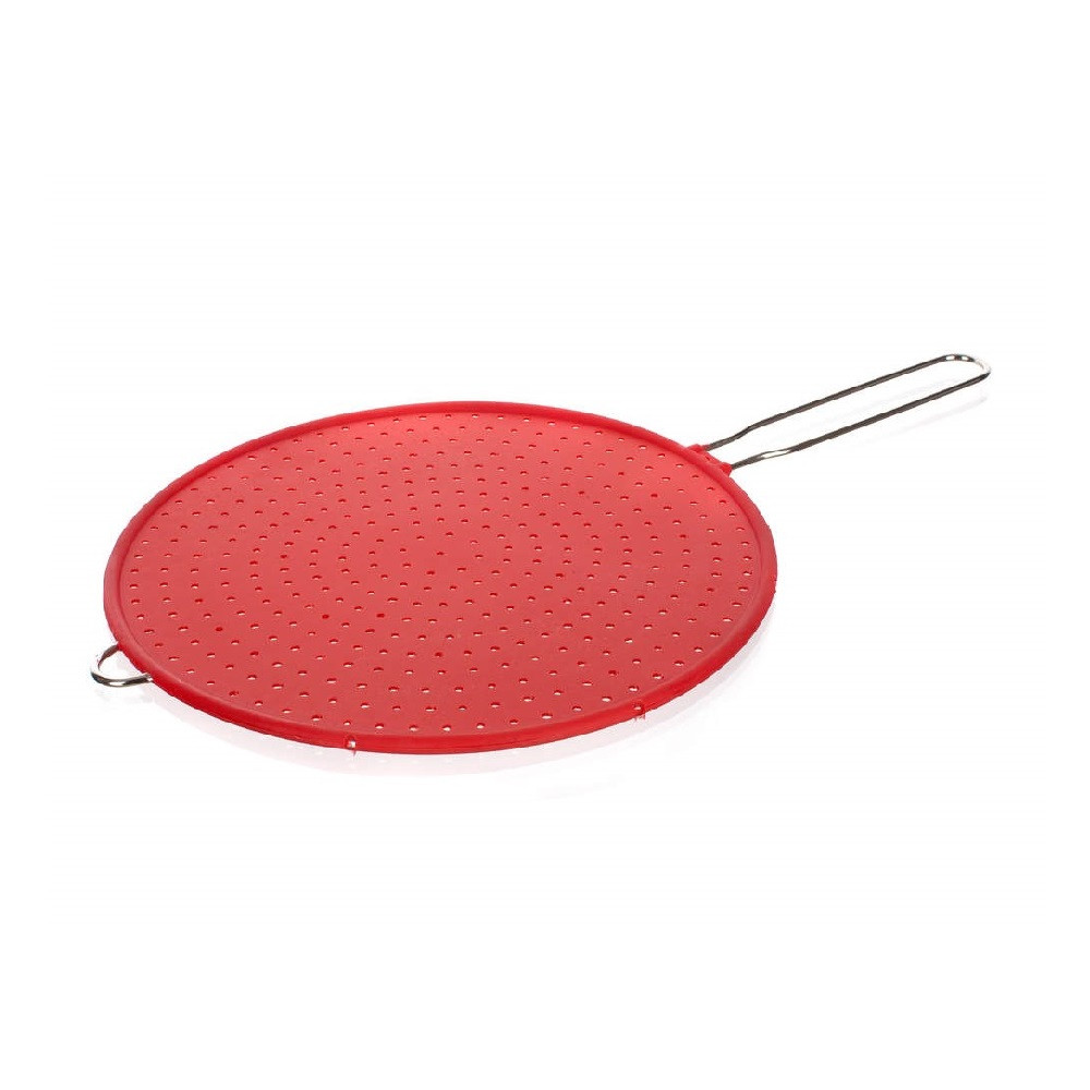BANQUET CULINARIA szilikon fröccsenésgátló konyhai eszköz, amellyel a szaftos, zsíros ételek készítése közben tisztán tarthatjuk a tűzhelyünket és elkerülhetjük a felcsapó zsiradék okozta égési sérüléseket. Ez a zsírfogó kiváló minőségű anyagból készült, hosszú használatra tervezett termék.