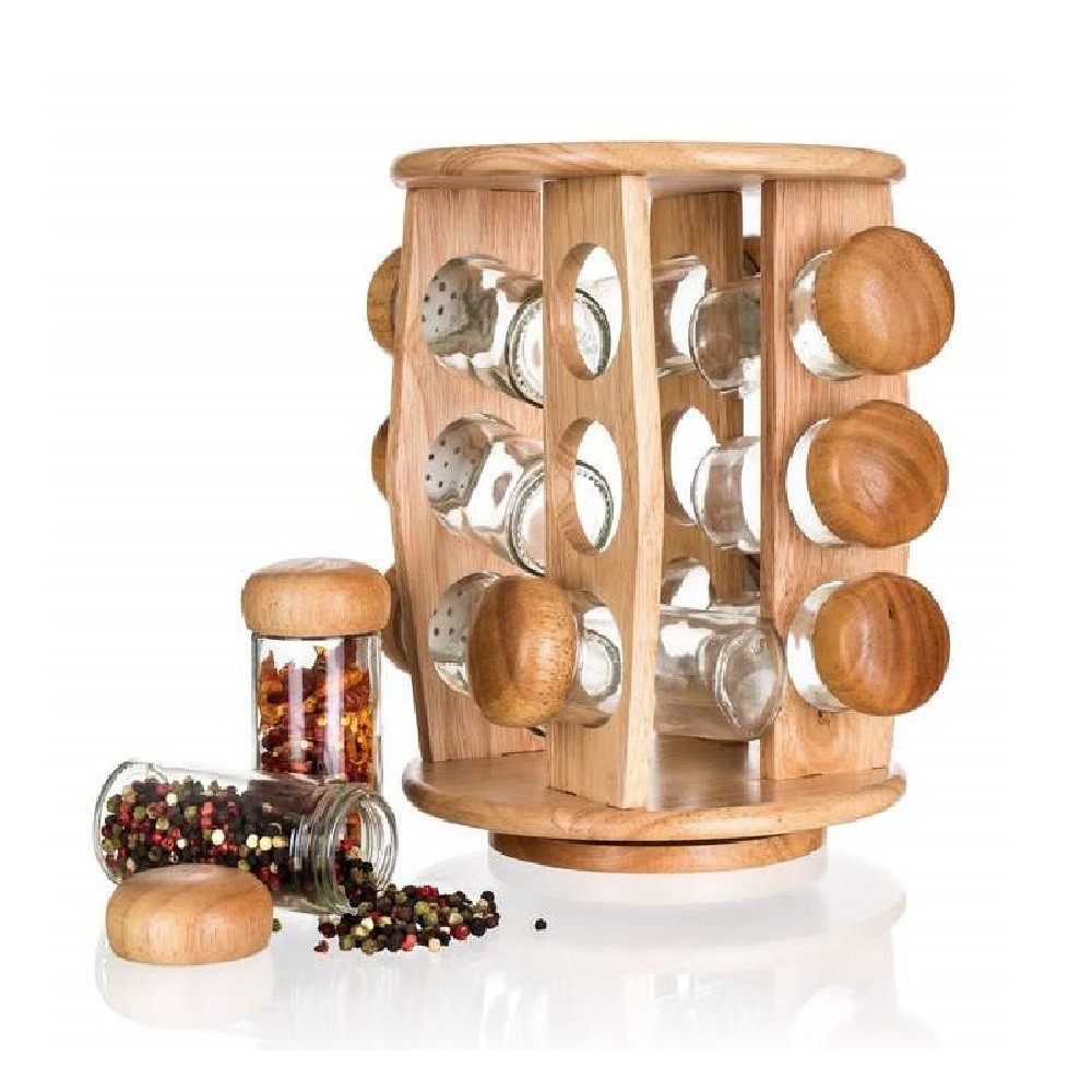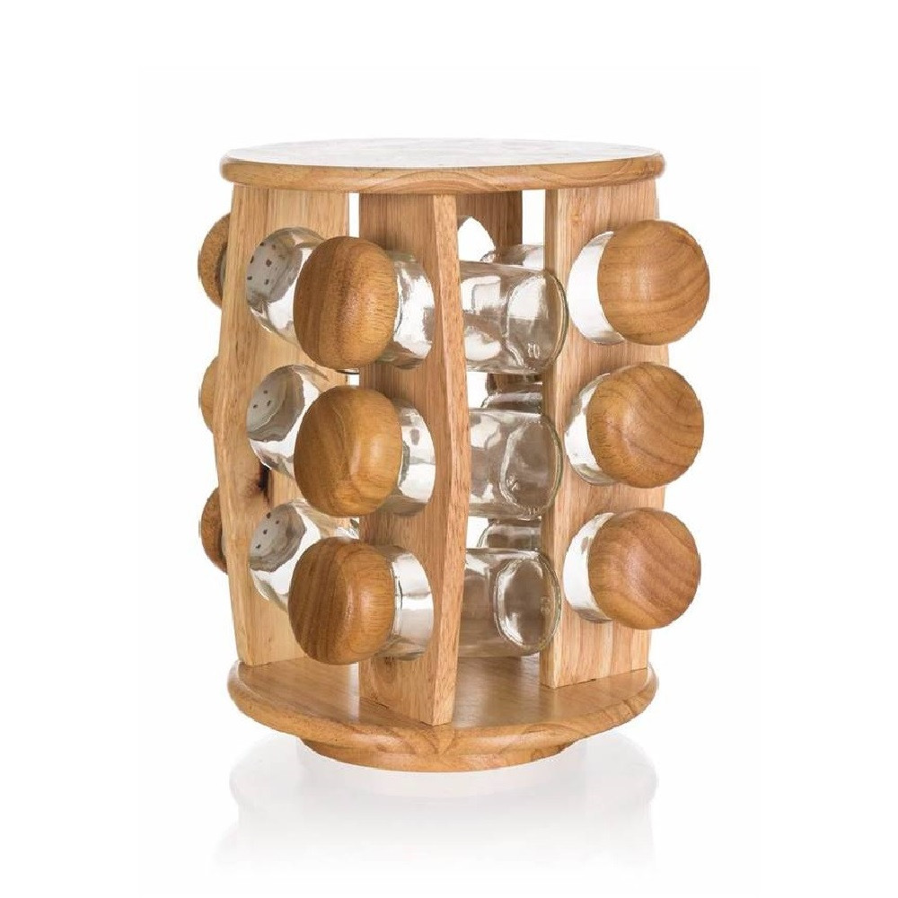 BANQUET Brillante magas minőségű fűszertartó készlet, minden háztartás hasznos és dekoratív konyhai eszköze. A szett 12 db fűszeres üveget tartalmaz gumifa tetővel. A praktikus forgatható állvány szintén gumifából készült. A gumifa prémium minőségű természetes, nemes keményfa, amely nem szívja fel a szagokat vagy a folyadékokat. Nem reped meg, kevésbé sérülékeny, az az egyik legkörnyezetbarátabb fafajta.