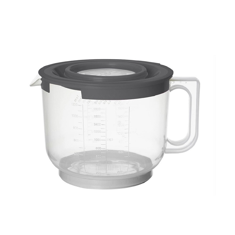 Mércés keverőtál fröccsenésgátló tetővel, kényelmes fogantyúval. A fedél biztosítja, hogy a tartalom a kancsóban maradjon, és ne fröcsköljön ki, az alján lévő gumi pedig stabillá teszi a kancsót keverés közben. A mérőskálának köszönhetően folyadékok kimérésére is alkalmas. Klasszikus konyhai eszköz, amely minden háztartás nélkülözhetetlen kelléke. Strapabíró, hosszú használatra tervezett termék. Többféle fedőszínben elérhető, praktikus konyhai eszköz.