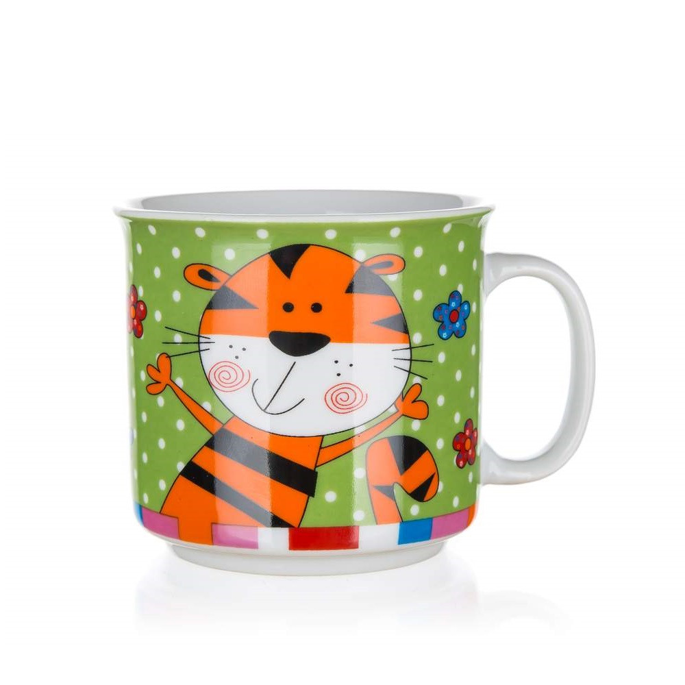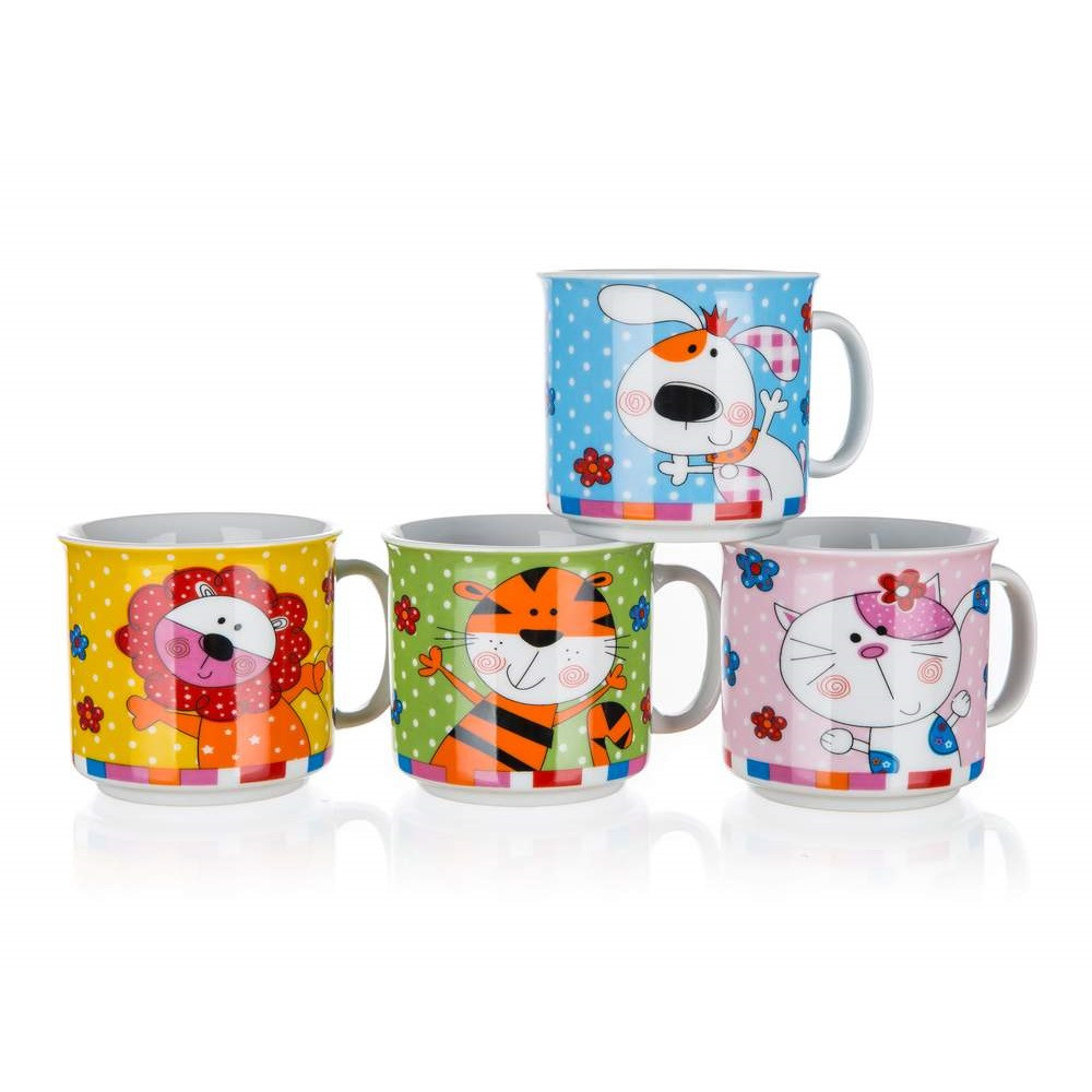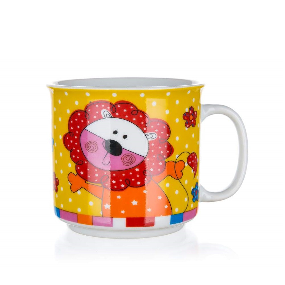 BANQUET Animals kerámia gyerekbögre különféle állatos dekorral, 1 darabos kivitelben. Forró és hideg italokhoz egyaránt ajánlott vidám reggeliző kellék, kedvenc darabja a kisebb és a nagyobb gyerekeknek is. Magas minőségű, 210 ml űrtartalmú, népszerű konyhai eszköz. A bögre mikrohullámú sütőben használható és mosogatógépben mosható.