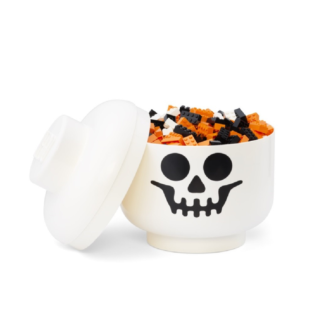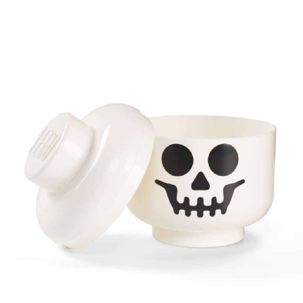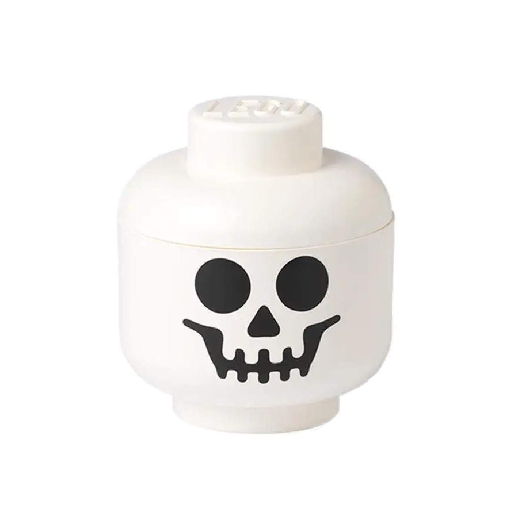 Az ikonikus LEGO figurafej tartós műanyagól készült, felnagyított változata csontváz arccal és levehető fedéllel van ellátva. Amellett, hogy praktikus, biztos, hogy bármelyik polcot vagy asztalt fel fogja dobni.