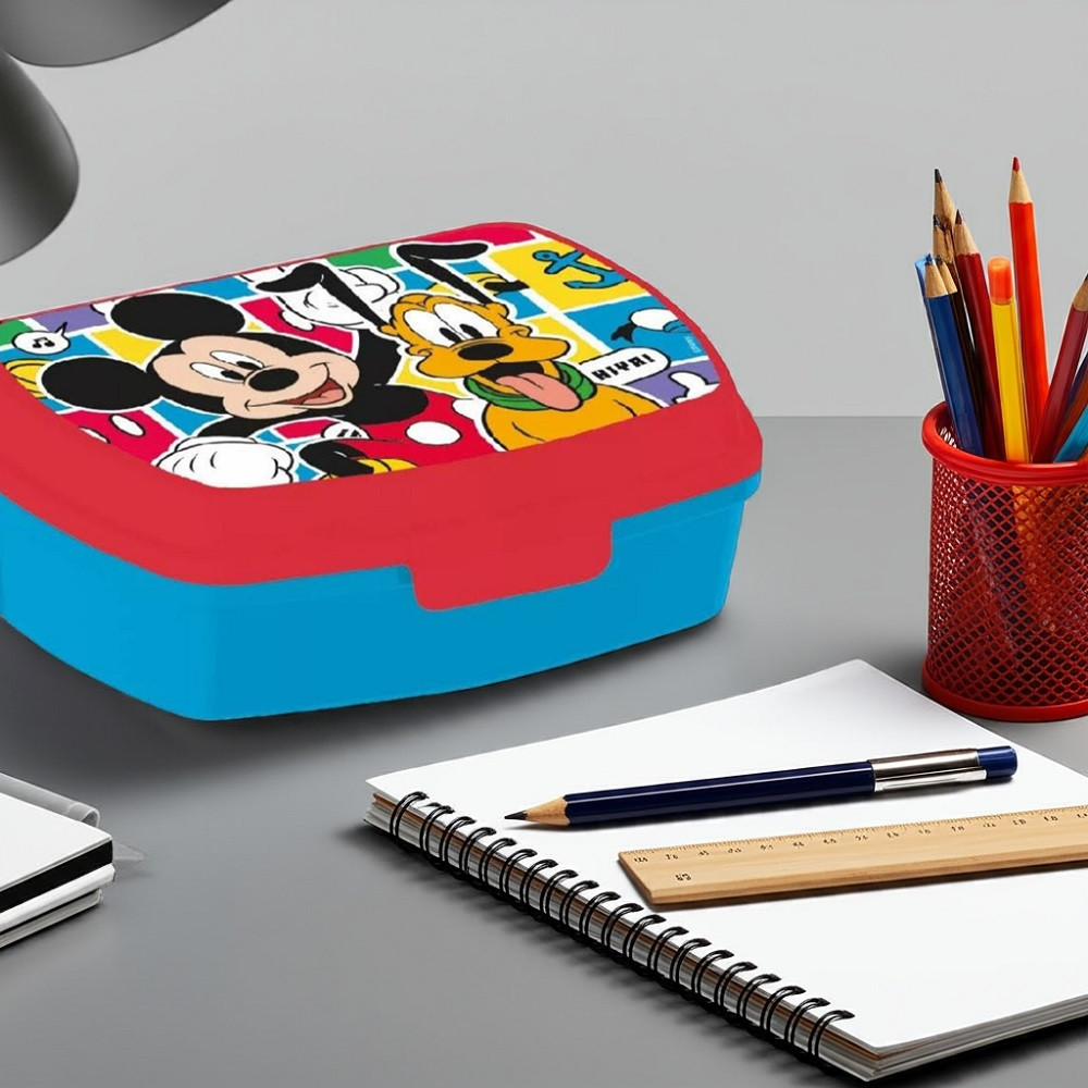 Disney Funny szendvicsdoboz a gyerekek kedvenc mesefigurája, Mickey Mouse megjelenítésével. Pattintós tetejének köszönhetően jól zár, az iskolai tízórainak elegendő helyet biztosít, de használható kiránduláshoz, utazáshoz is. Magas minőségű, BPA-mentes műanyagból készült termék. Strapabíró, tartós használatra tervezett uzsonnásdoboz. Praktikus konyhai eszköz.
