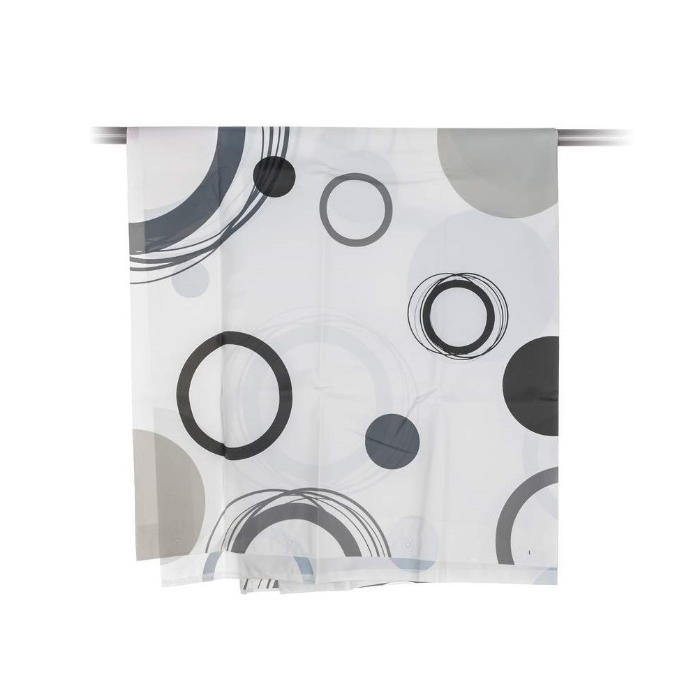 BANQUET BRILANZ zuhanyfüggöny buborék mintával. A fürdőszobák nélkülözhetetlen kelléke a zuhanyfüggöny, legyen szó zuhanytálcáról vagy fürdőkádról. Ez a dekoratív, kiváló minőségű fürdőszobai eszköz minden zuhanyzó és fürdőszoba hangulatát feldobja. Használata egyszerű, csak akassza be a függöny nyílásaiba a karikákat, és rögzítse a zuhanyfüggöny rúdon. Magas minőségű termék.