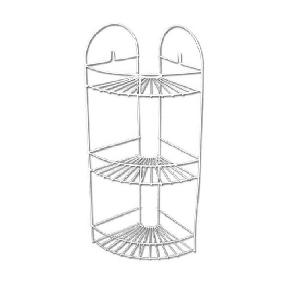 Háromszintes fürdőszobai szinterezett fém fali sarokpolc. Praktikus, sokoldalúan használható és az otthonunk szinte minden helyiségében - a fürdőszobától a garázsig - hasznos kiegészítő. Ez a 3 polcos népszerű háztartási termék sosem megy ki a divatból. Jó minőségű anyagból készült, hosszú használatra tervezett, jó teherbíró-képességgel rendelkező eszköz.