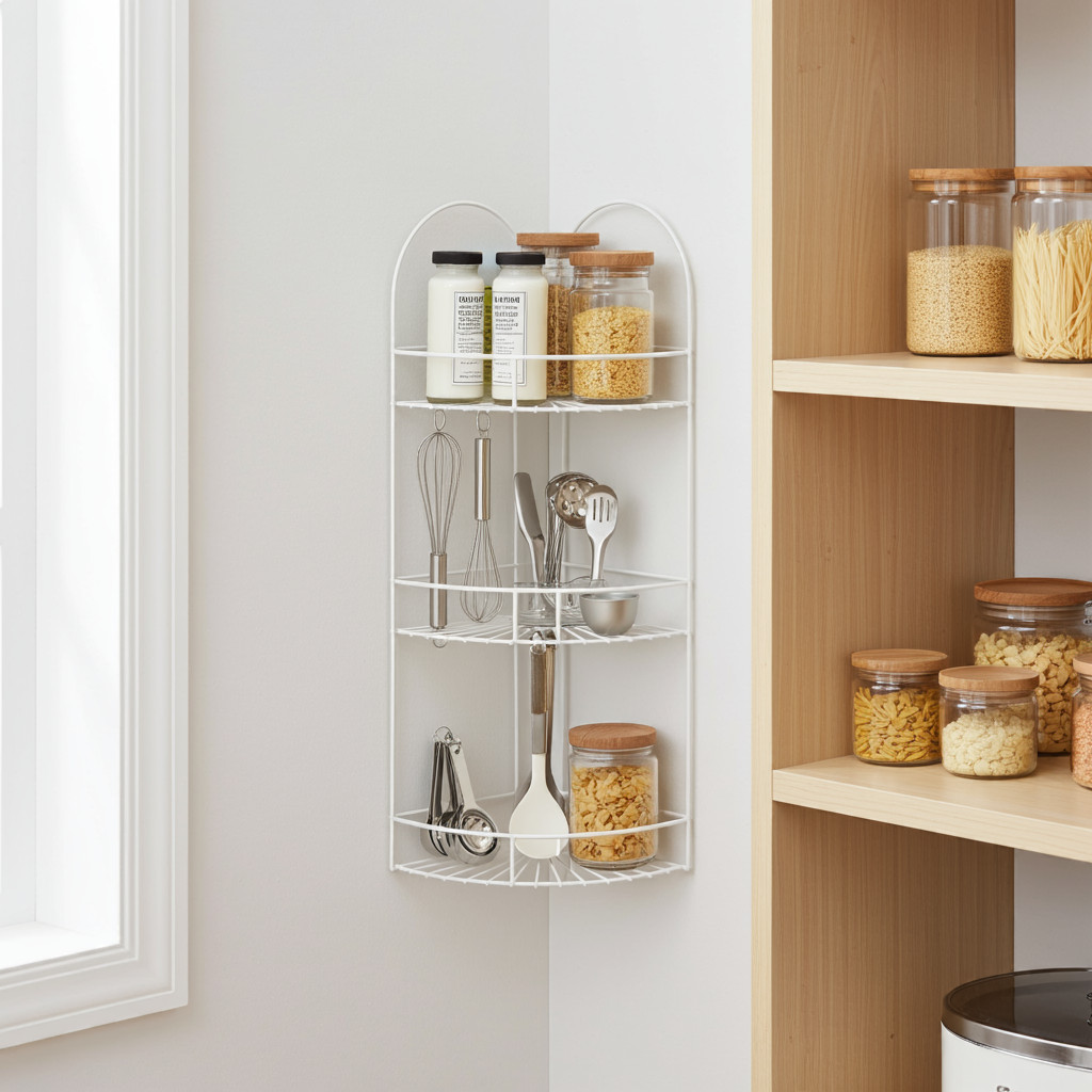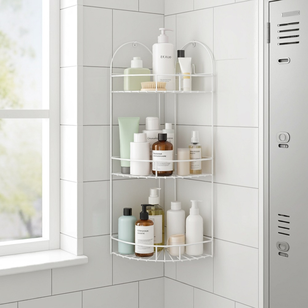 Háromszintes fürdőszobai szinterezett fém fali sarokpolc. Praktikus, sokoldalúan használható és az otthonunk szinte minden helyiségében - a fürdőszobától a garázsig - hasznos kiegészítő. Ez a 3 polcos népszerű háztartási termék sosem megy ki a divatból. Jó minőségű anyagból készült, hosszú használatra tervezett, jó teherbíró-képességgel rendelkező eszköz.