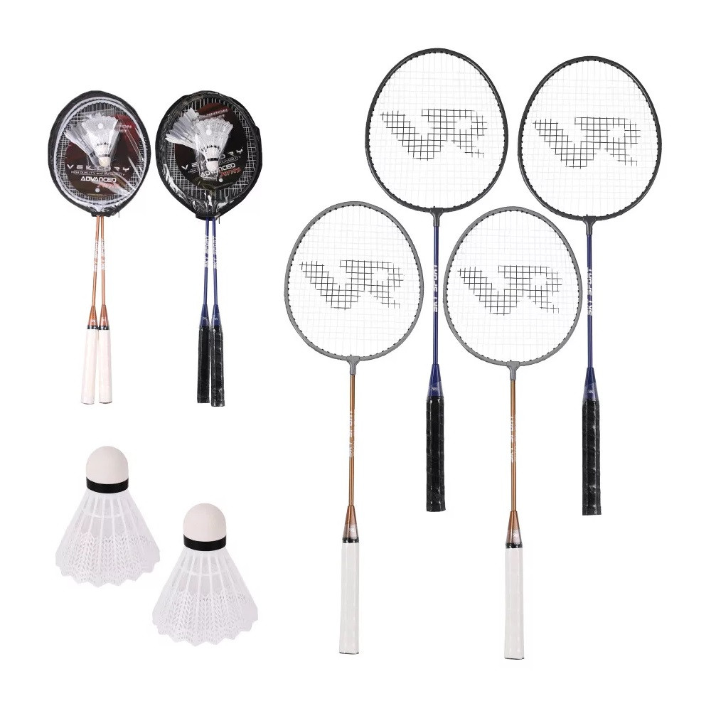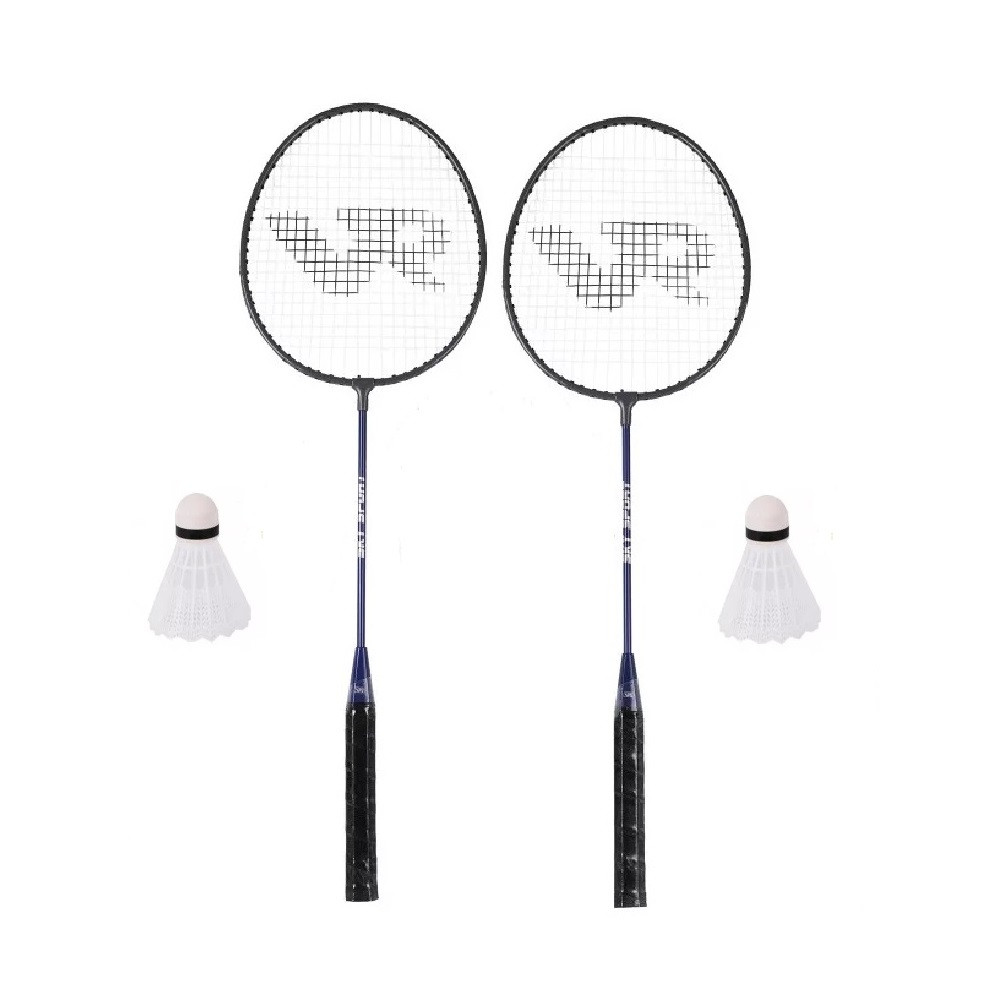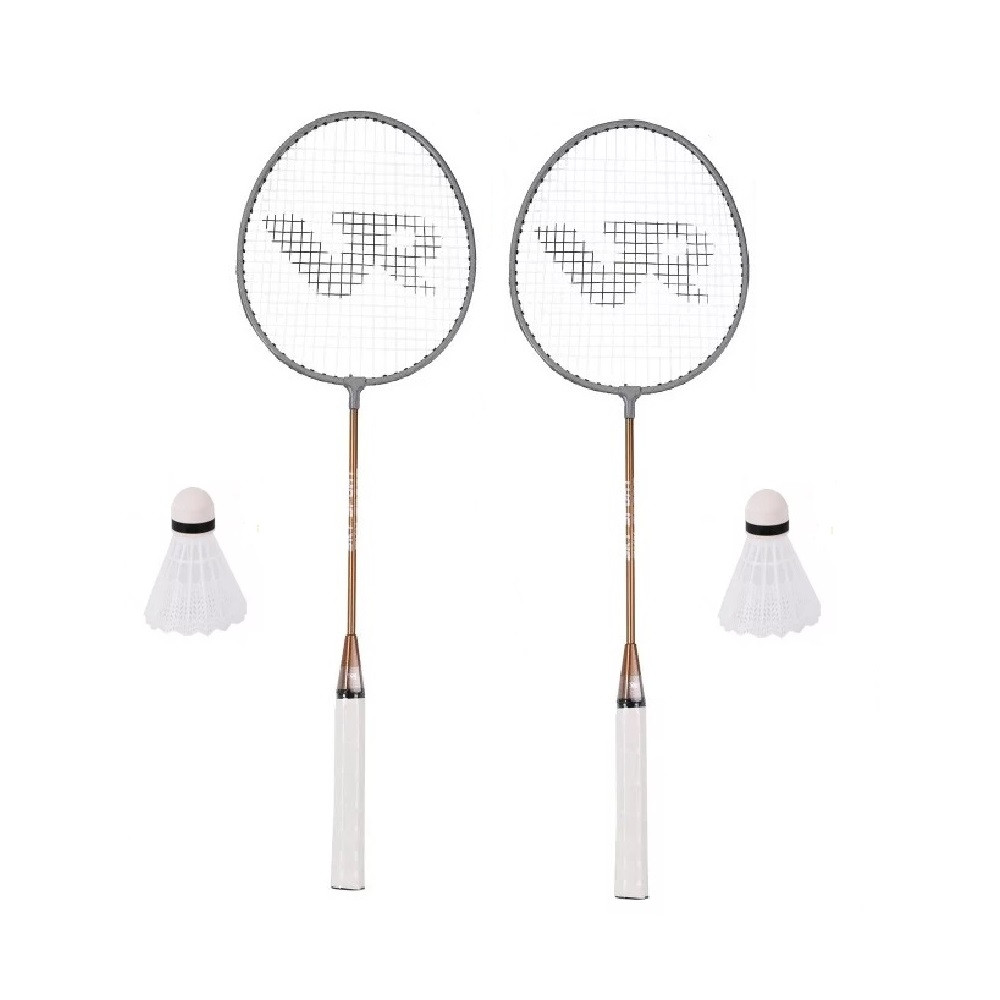 Fém tollasütő készlet 2 darab ütővel, 2 darab tollaslabdával és praktikus tokkal. Az ütők fekete-fehér damil húrozásúak, markolatuk fehér vagy fekete fólia borítású.